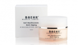 Mit straffer und vitaler Gesichtshaut in den Tag starten: Gel-Nachtcreme Anti-Aging mit Kirschblüten-Extrakt und leichter Textur spendet über Nacht die nötige Feuchtigkeit für anspruchsvolle Haut. Die hydratisierende Wirkung wird von Urea und hautpflegendem Senna-Extrakt unterstützt.