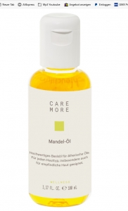 Das Mandelöl dient als Basis- bzw. Trägeröl, das mit ätherischen Ölen vermischt wird. Werden ätherische Öle mit dem Basisöl vermischt, können sie problemlos in die Haut eindringen. Unverdünnt aufgetragen können sie Hautreizungen verursachen.