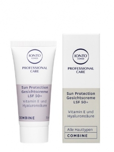 Die Sun Protection Gesichtscreme LSF 50+ von IONTO-COMED Professional Care bewirkt nach einer apparativen Gesichtsbehandlung den optimalen Schutz der Haut vor UV-Strahlung (UVA und UVB 50+).