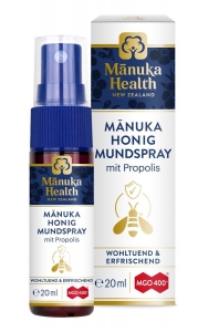 Das neue Mundspray von Manuka Health enthält besten MGO 4OO+ Manuka Honig und neuseeländische Propolis BIO3O™ mit hoher Konzentration an BlOflavonoiden (mind. 3Omg/g). Wertvolle Öle von Pfefferminze, Anis, Myrrhe und Nelke ergänzen die Formel perfekt und sorgen so für eine effektive Mundhygiene durch 1OO% natürlich wirksame lnhaltsstoffe.