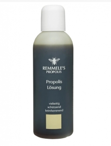 Da die Lösung nicht wasserlöslich ist, dringt sie nicht in tiefe Hautschichten ein, sondern legt einen schützenden Film über die Hornschicht der Haut. Sie lockert überschüssige Verhornungen "mechanisch" auf und erleichtert so das Abtragen. Die in der Lösung enthaltene Trockensubstanz unterstützt die Elastizität und Geschmeidigkeit der Haut. Ein Grund für die besondere Wirkung von Propolis sind die Bioflavonoide. Sie wirken einer Vermehrung von Keimen entgegen. Wirkstoff Propolis-Flüssigextrakt