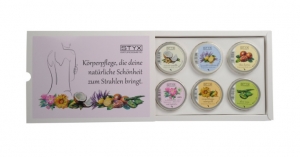 Das Set beinhaltet unsere ECOCERT, COSMOS- oder BIO-zertifizierten und veganen Körpercremen: